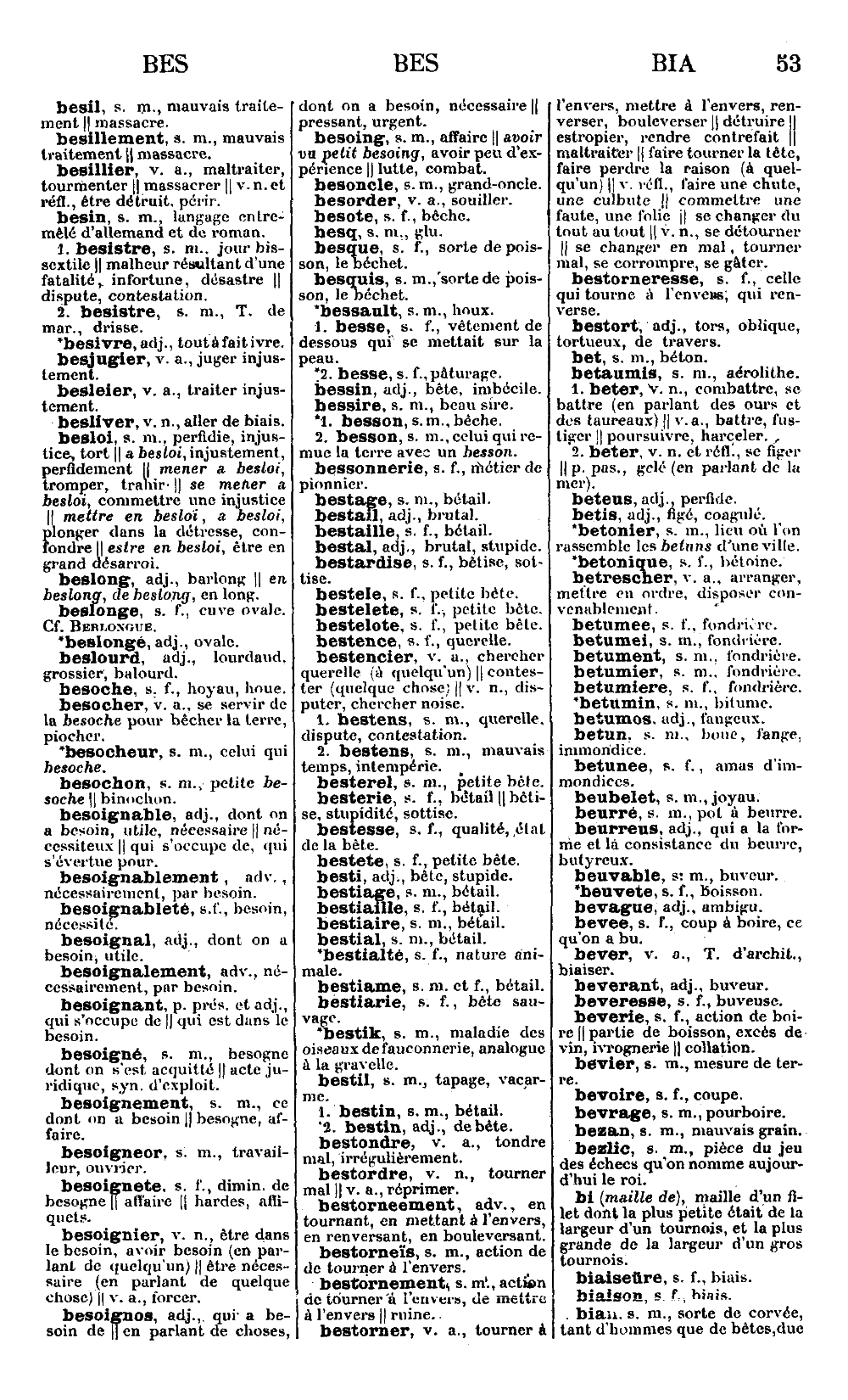 P. 53 col. 3, remplacer: « battre, fustiger » dans l'art. BETER 1 par: « faire attaquer par des chiens »